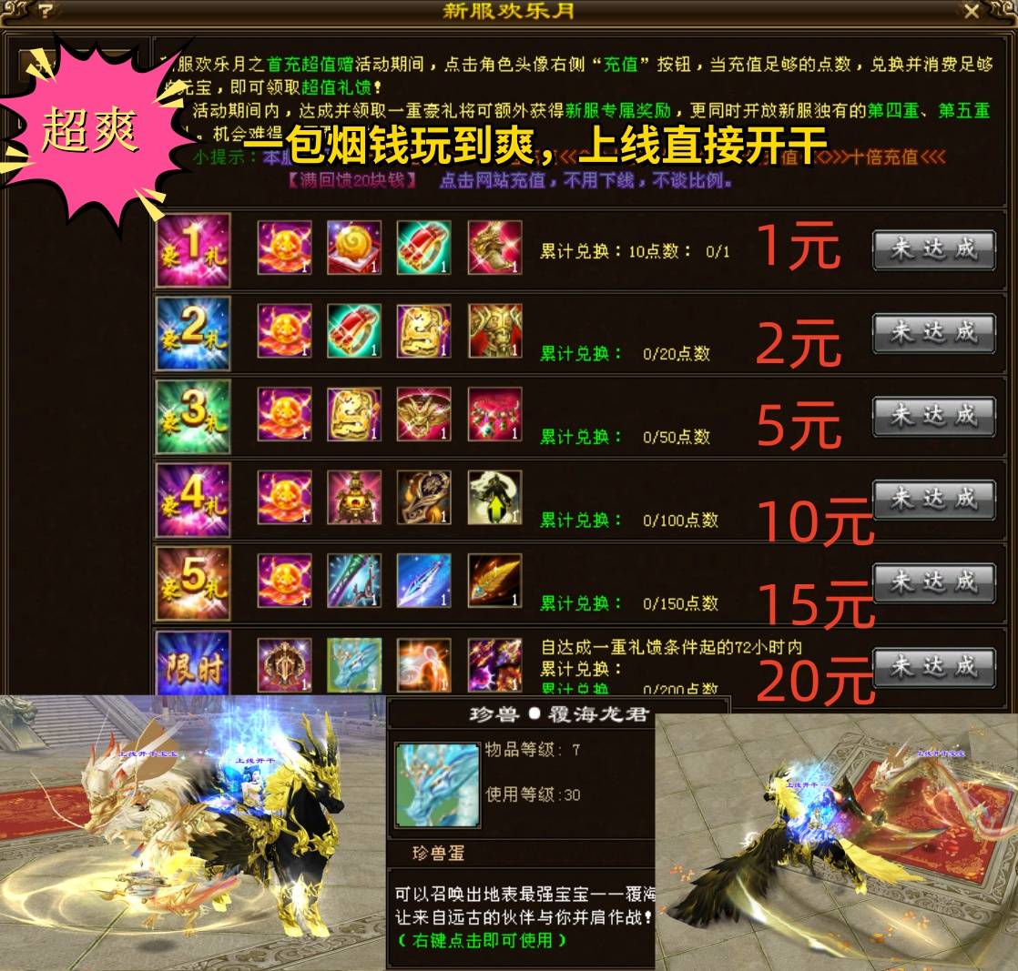 【元宝比例】1:20000、10倍充值、无托无待遇,找托死全家,玩家绝对平等